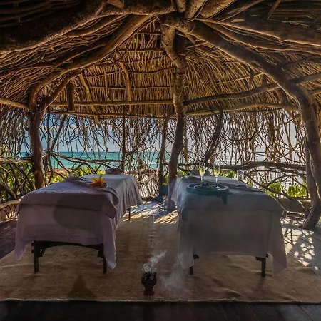 Os hóspedes podem relaxar com massagem na cabeça, massagens às costas e massagem facial ou bandagem corporal, esfoliação corporal e faciais oferecidos no hotel de Tulum. - ❓